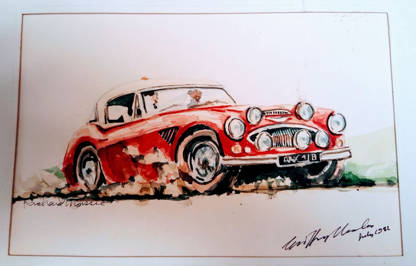 No recent photos so here is one that hasn't been seen before. A painting by Rich Massie, member for many years of the AH Club of Oregon. It is in the possession of Paul Rogers, whom I met in 1982 on the big Healey trip.