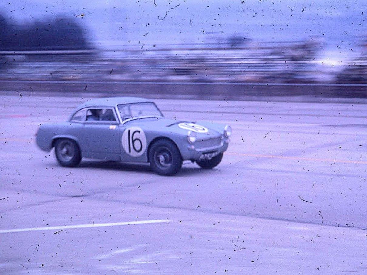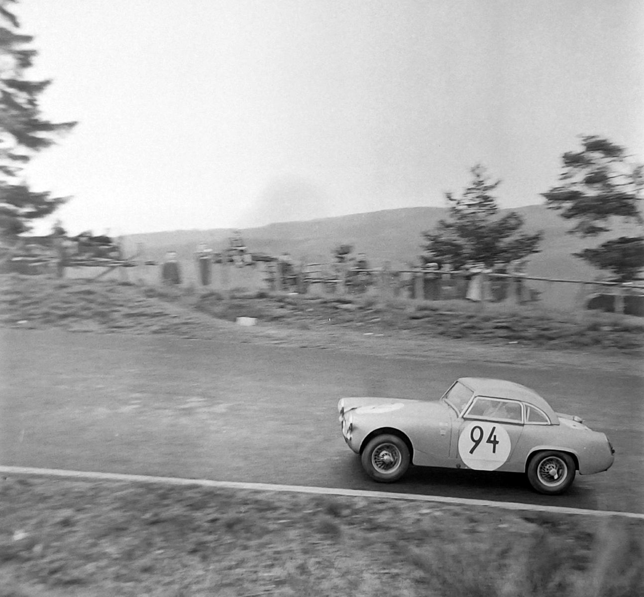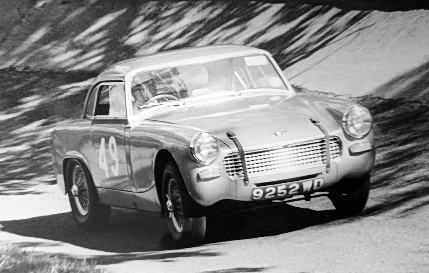 There were awful ‘moments’ when I thought I had had it, but there were also the rewarding instances when I passed other cars. Somehow it had never entered my head that so small a car as a Sprite could pass anything in a big International race like this, but as I sailed past the odd Porsche or Jaguar I really felt immensely proud of the little Sprite, whose oil pressure and water temperature were as steady as a rock, and whose engine note never faltered.”