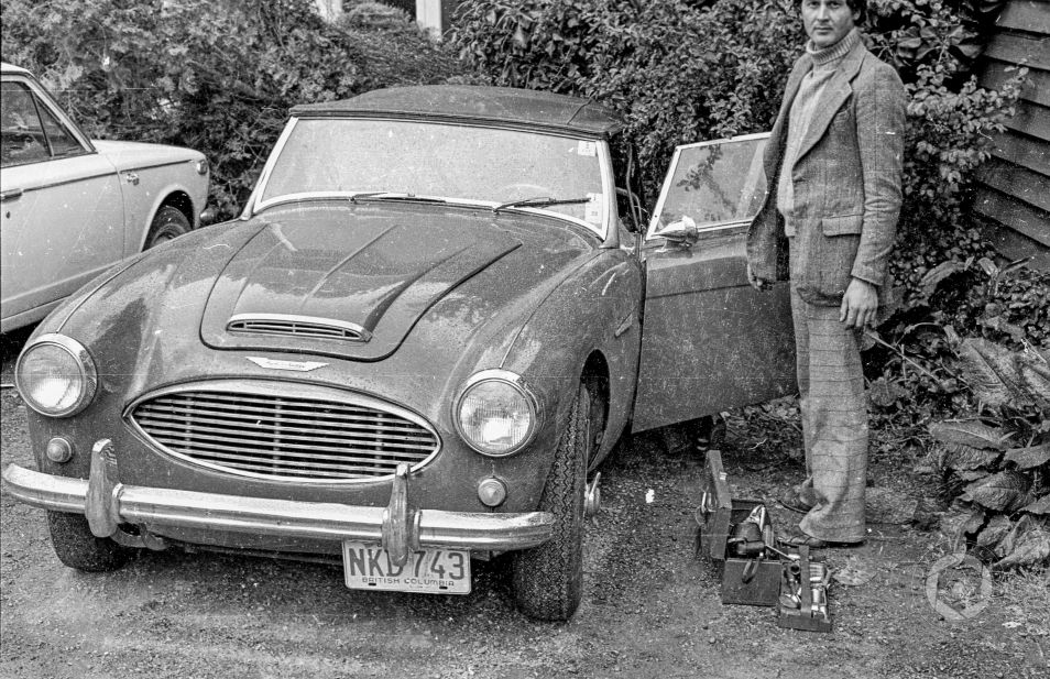 Geoffrey Healey beside the Richard H Mayor AH 3000, from Richard Mayor archives at the Bend Oregon meeting in 1979.
