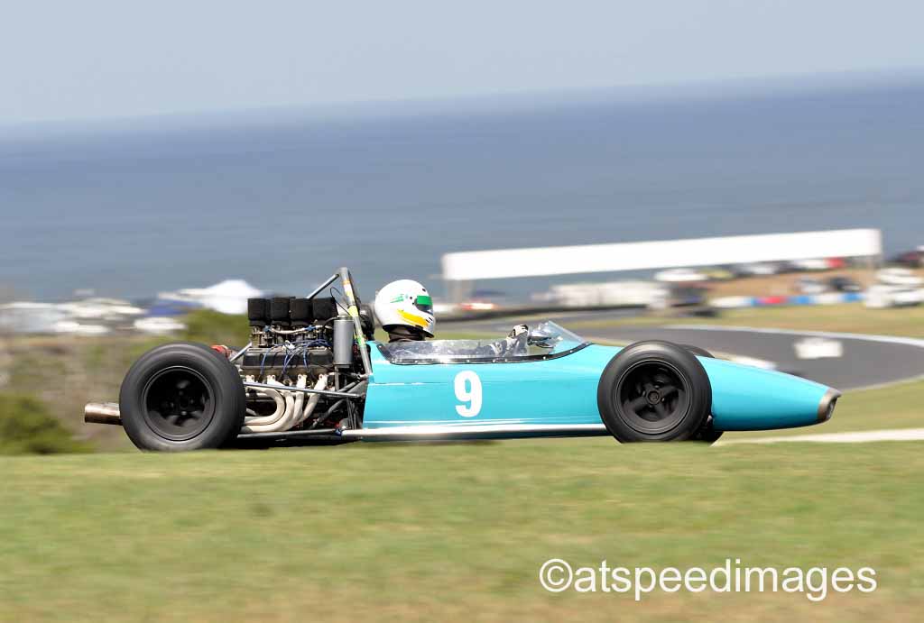 This is Les Wright in the Brabham BT21/23. Would love to know what motor this car runs. Race results say its 3.5 litres, which would fit with an Olds V8 or similar.