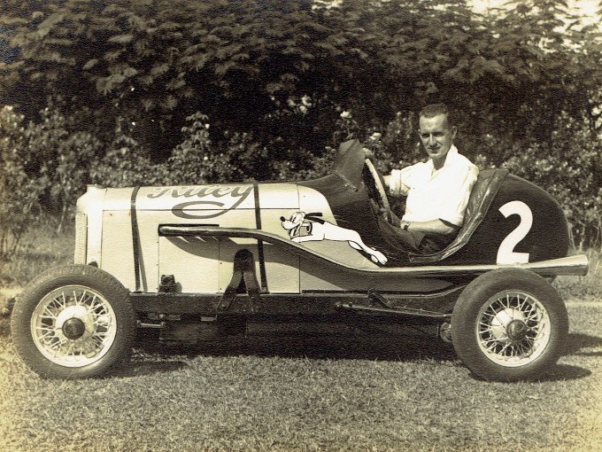 Jack Boot sitting in the car at Huntly -my note says 1940's could be the same meeting.
