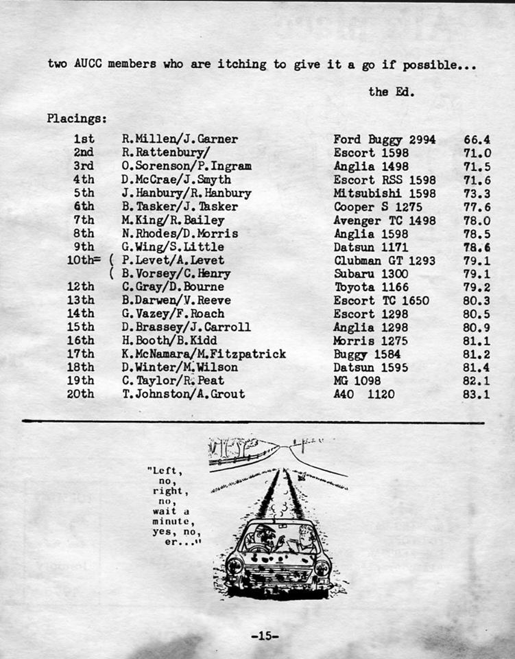 Milan, fantastic, thanks for that, I didn't even make 6th in class - 1601 - 2500 in the 2138cc TR4A, against all those Escorts and the odd Mazda Rotary .. I can now put some of my notes in order.. comment about TCC being the last round oops !!