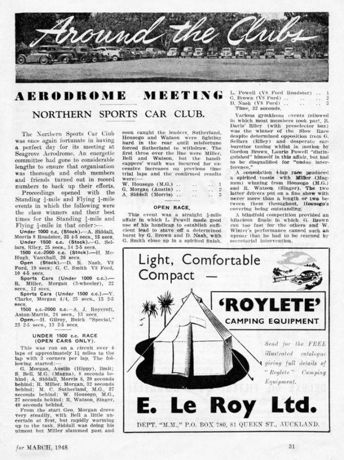 A report on a NSCC race meeting at Seagrove in early 1948.
