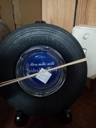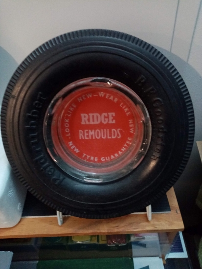 The Reidrubber Ashtray in the centre of the display - in Blue - the most expensive at $195.