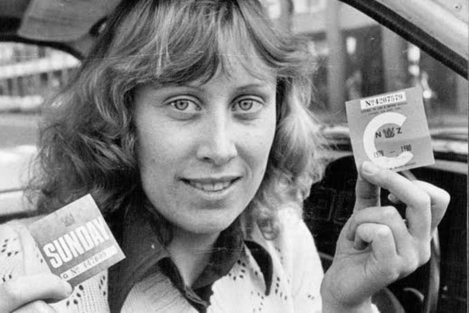 The new Registration Sticker with the " C " and a Carless Day sticker being displayed by a lady - no idea who or whether it was part of the Promotion of the scheme ..