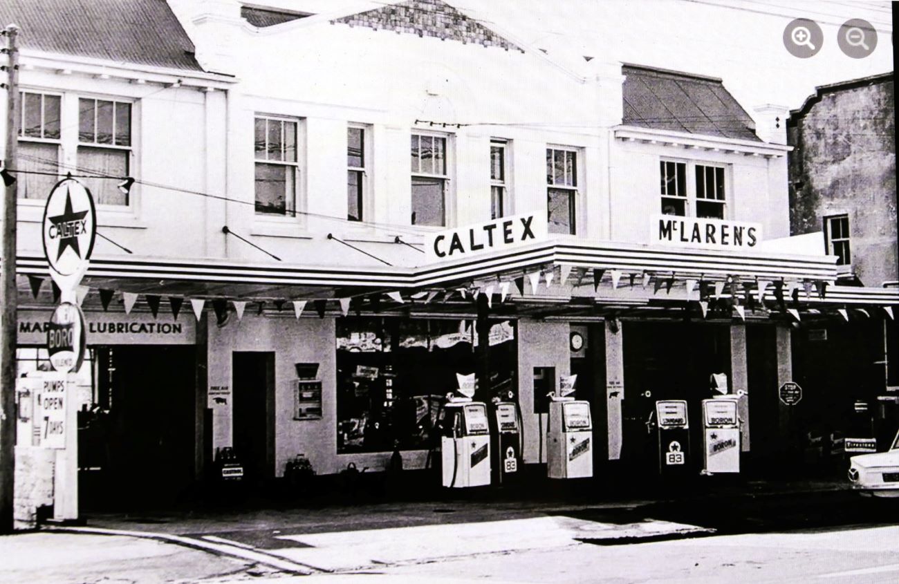 The McLaren's Service Station on Remuera Road, Remuera. 1956 -61 plates on the VW - I think..