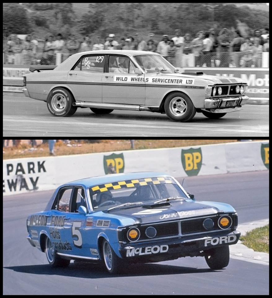 Norris Miles raced in this car in same blue with AC Gill Menswear sponsorship. Brian Bowater bought a Falcon GT ( to HO specs and maybe better ) off Ross Tebbs. Believe this was the car he had his unfortunate accident in. I think the top car is a different car to the curcuit one. He did run the curcuit (ex Goss) a few times but it was not really changed much.