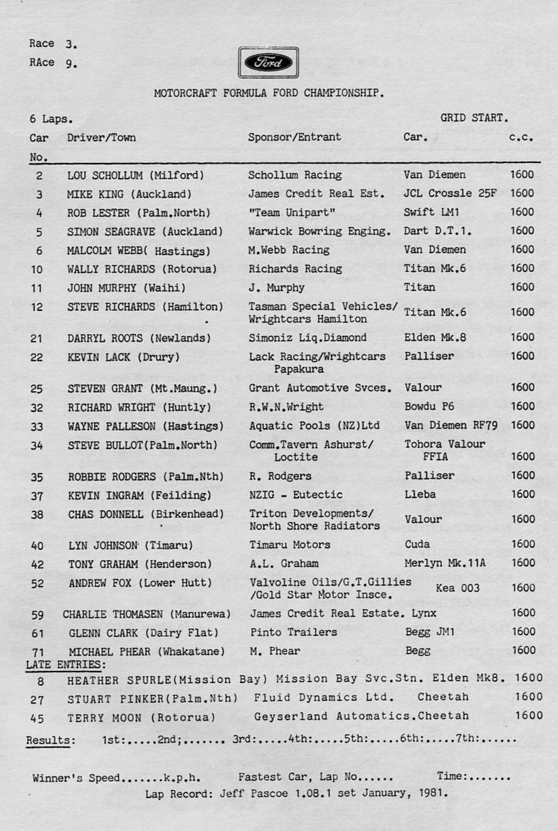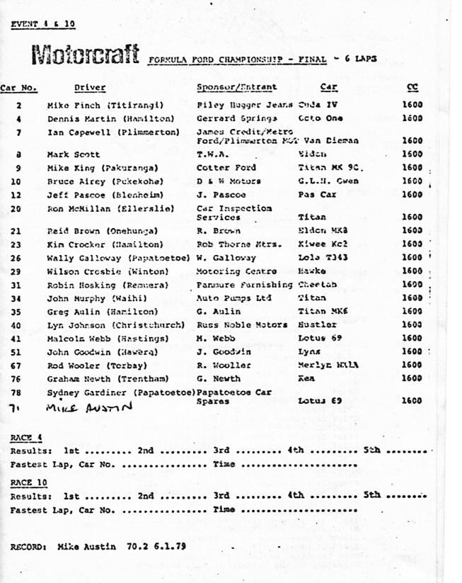 This is the entry list for the FF races at the April 1 1979 meeting at Pukekohe.