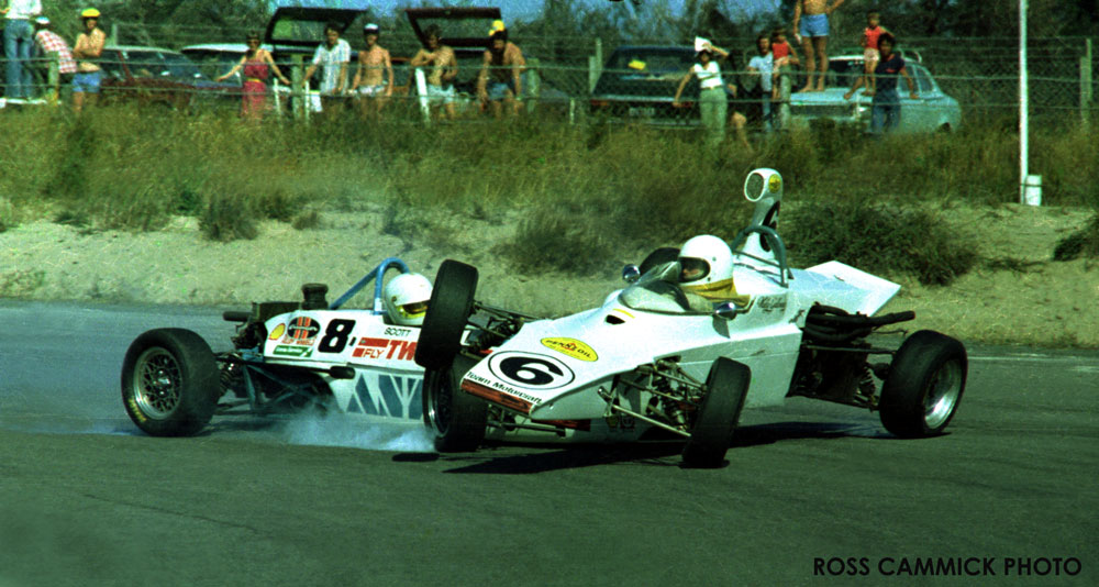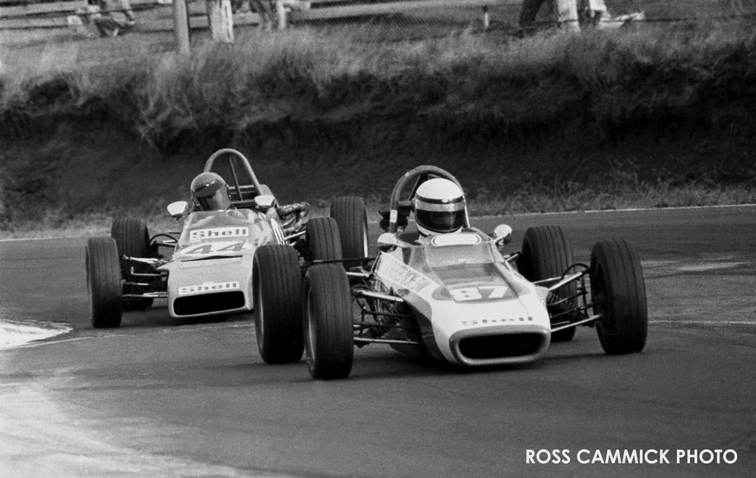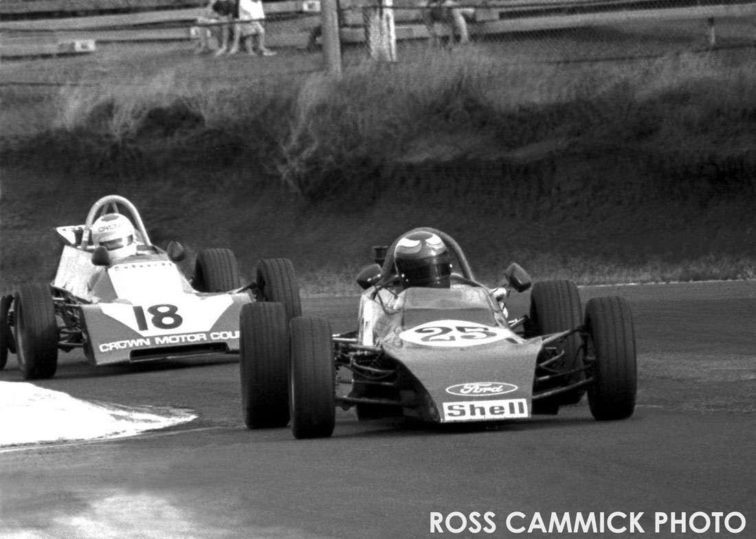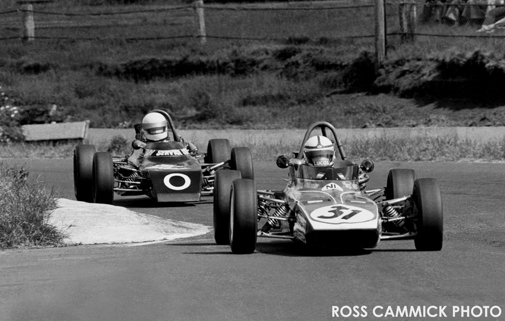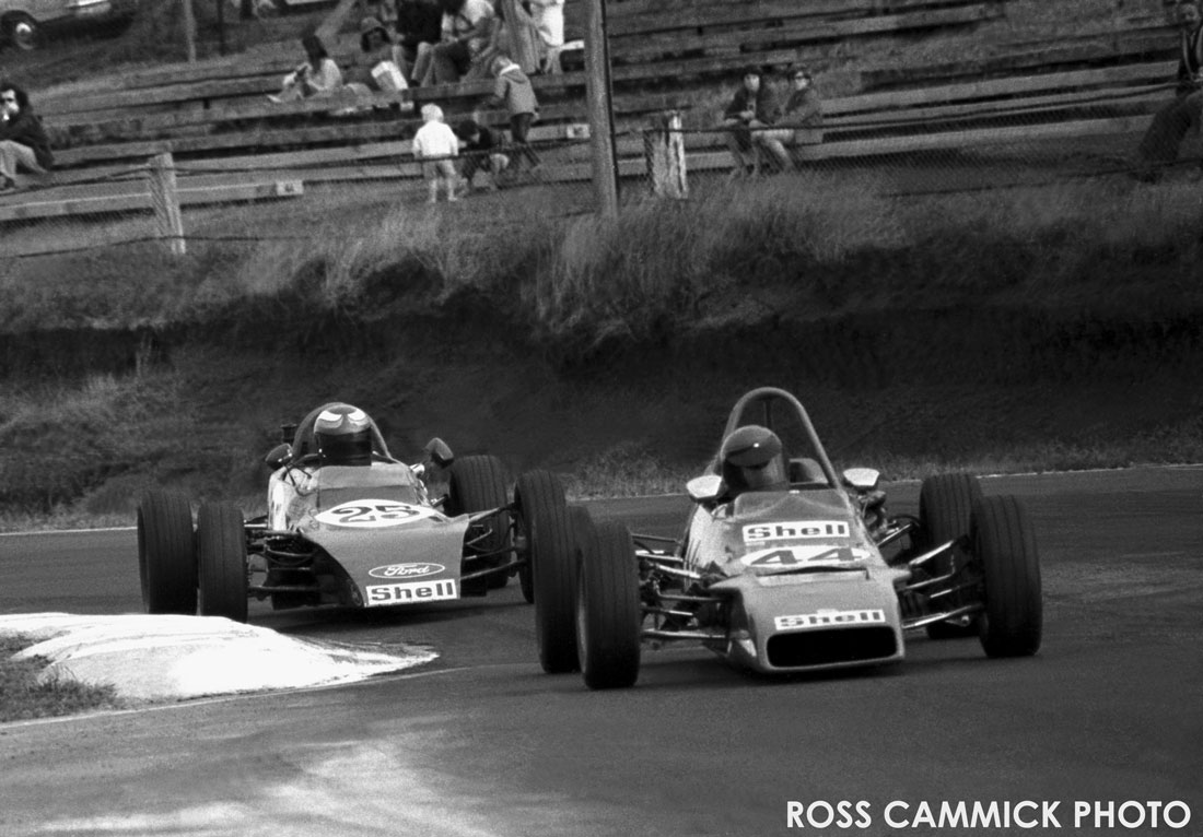 5th photo down Brett in his Titan Mk6C chased by yours truly in Palliser WDF2, Pukekohe top chicane "73 - '74 season.