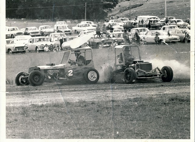 Stockcar racing was very strong in Eastern Southland during the 1970's - here is a photo taken I think at Monaghan's at Brydone in 1974. It was basically paddock racing. Can anyone help with names etc.