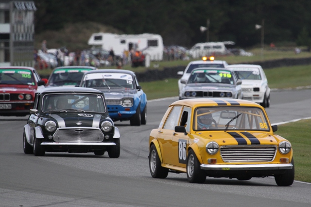 When Angus and I went the Sth Island a couple of years ago, fields that we struck down there were completely different to what we raced in up here. At Teretonga, my favourite track to drive on just incidentally, we had just about everything in the under 3L 'Classic saloon race....pre 65's, BMW E30, 300 HP Escort, Mini 7, Morris 1100, Alfa Romeo 1750, Daihatsu charade, Lotus Elan, Datsun 1600...... you name it , it was there.......because the organisers didnt receive enough entries in those classes for a grid, and we were all lumped together. I know all this is a bit different from some meetings where 900HP Porsches are pitted against Minis, but hey, I certainly competed against things I would never have raced with up in the Nth Island, and this is what happens when event organisers dont have the luxury of a big entry.
