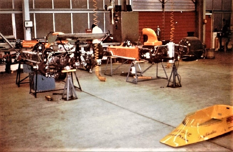 If you look closely at Graham Donaldson at the lower left adjusting the right front wing, you will see the top of a head and a left fore arm under his nose. That would be me ! September 1975.