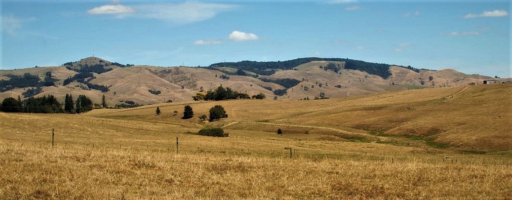 Our home was on the other side of the brown, round Maori fortress hill, in the centre, our farm boundary line went over it.
