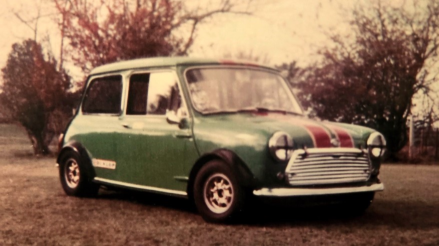 John's Mini Cooper the day before it went to Pukekohe. November 1970.