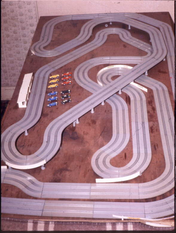Whilst most had 1/32 scale Scalextric sets, we had a 1/52 scale Wrenn set, which meant we had the ability to design and race some terrific circuits on an 8x4 sheet of ply. I got RSI from spending so many hours each night slot racing! Although Dad owned the most cars (53!) I have all 60 complete with track and spares. it ran on 12v AC or DC initially, though later cars were DC only. AC was faster with a ratchet and pawl motor, but the cars got hot quite quickly. Power was on or off so you freewheeled around the corners.