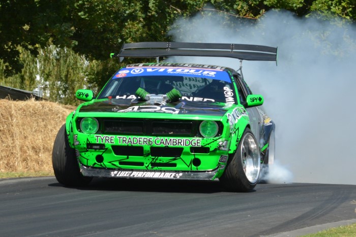 On this run, Paul seemed to have some gear selection hiccups as he passed, so was a second or so slower than the previous day. A better vantage spot than last year as the straw bales were a bit lower, but you still only get a split second or two to get a snap.
