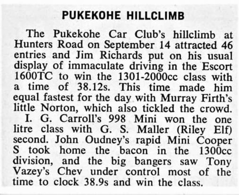 The Hawkes Bay Car Club held a Gold Star Hill Climb in the 1961/62 season at Te Onepu near Hastings.