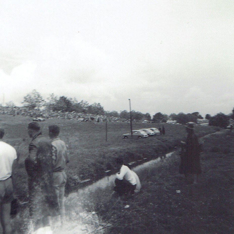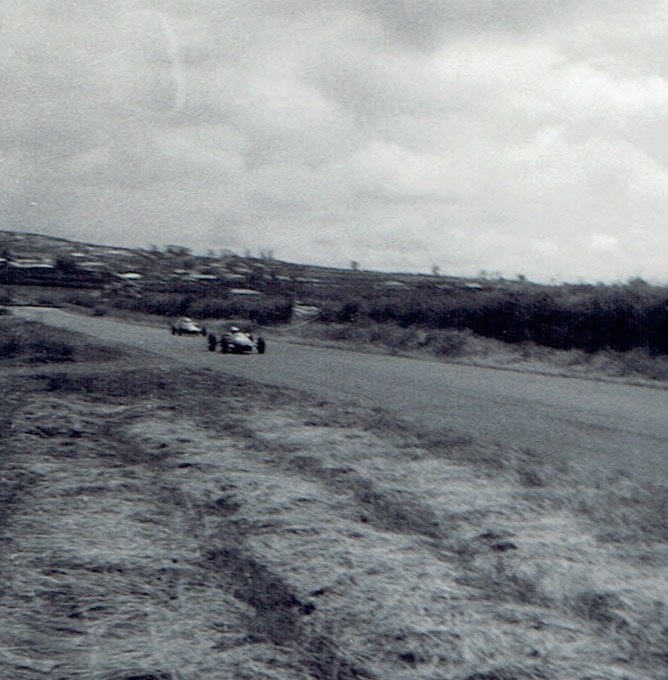 My view of the Elbow showing Bruce McLaren catching up on Jim Palmer with Jack Brabham approaching on the right.