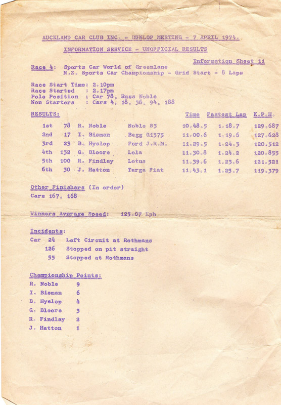 My (Eugene Boyle - formerly of Te Aroha) first memories of SCANZ go back to Bob Hyslop at Manfield in the early 1970's racing the JRM. I attempted to join in the fun, albeit briefly in 1983 in a Mallock Mk4 (now owned by Gavin Bateman) and a MK 8 (now in the custody of Brian Service -HRSSC). Realised that I was trying to " ... go to a gunfight with a knife ..." so I retreated to repair the Trevor Larsen damaged Rhubarb 2, but a divorce intervened and put threw everything up in the air!