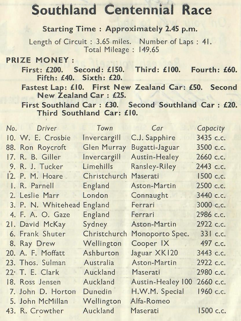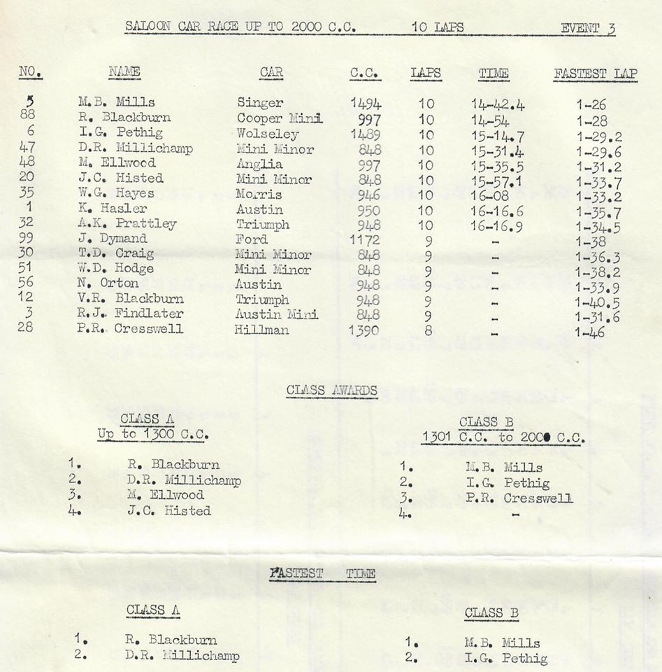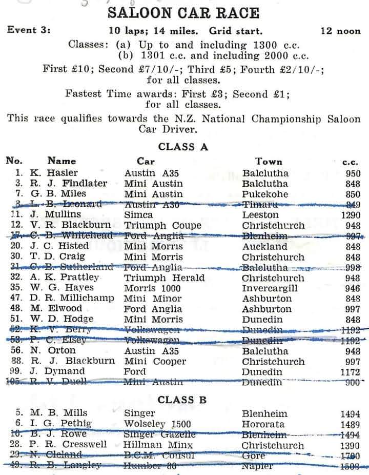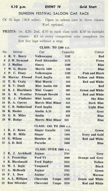 Entry List for the Saloon Car Race - from Graham Woods archives.