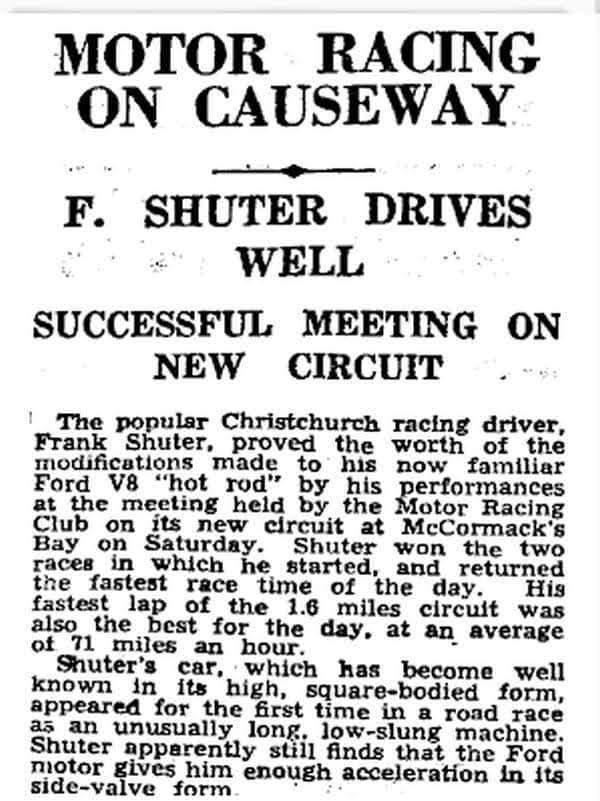 The events were double as on the Saturday the car was in a " Parade of Old Race Cars " at Ruapuna, and at the BOP day on the Sunday.