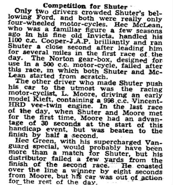 Others are Alan Rhodes 260M Zephyr, John Armstrong Cooper Bristol and Arthur Smith 120EN with a 1500cc motor.