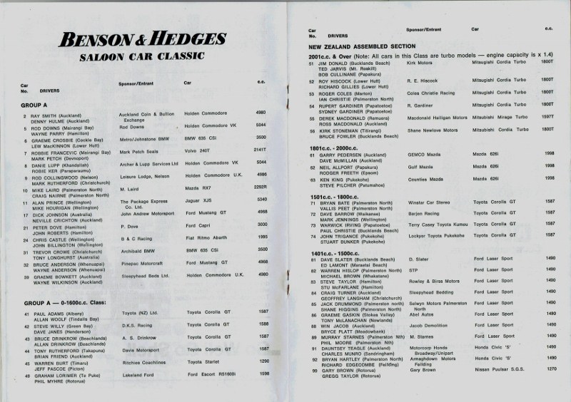 Pukekohe - some entry lists .. Thanks to Graham Woods.