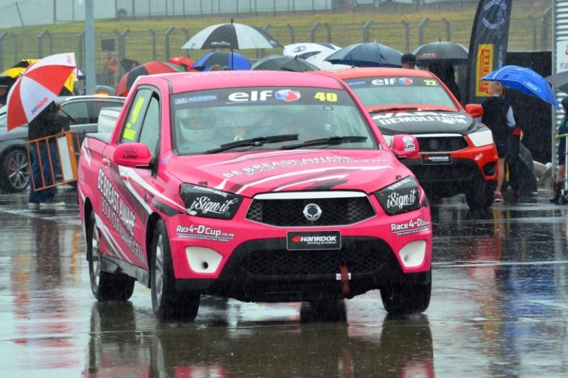 ---and support for breast cancer awareness - Sheridan Broadbent's turn at the wheel.