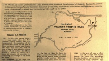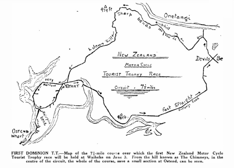 The New Zealand Tourist Trophy Race - for Motorcycles was first run in June 1931 on Waiheke Island.