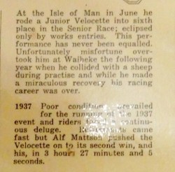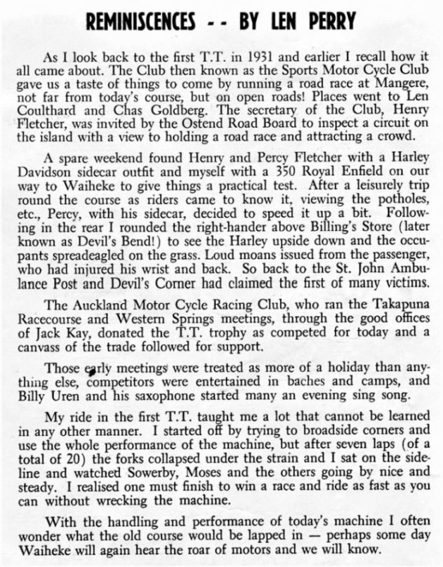These reports appeared in an article - with credit to the New Zealand Motorcyclist - from Graeme " Spyda " Staples archives.