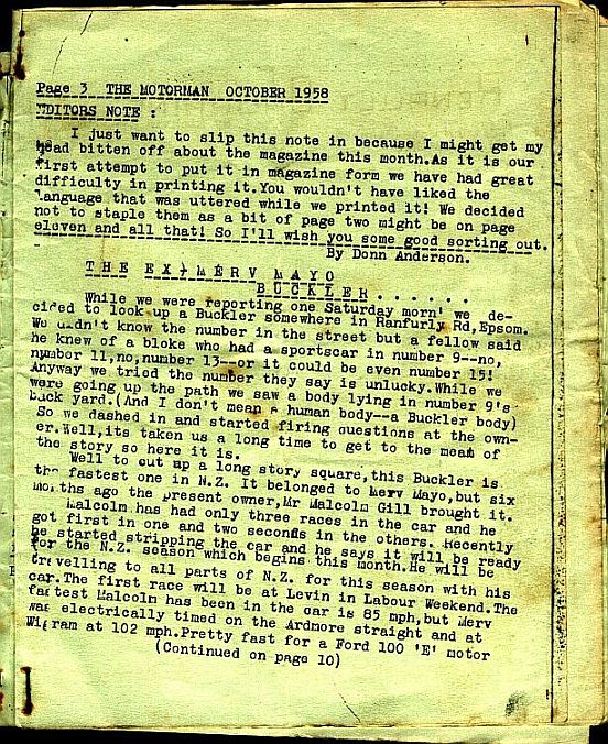 I am very much indebted to Kelvin Brown and Bruce Sutcliffe who have been instrumental in perpetuating the appeal of the marque. Without their efforts Bucklers would have faded into oblivion in New Zealand as just “funny old cars which the old guys played with”. In the UK there is an equally prolific researcher Brian Malin and I will be pinching plenty of his stuff (with approval)