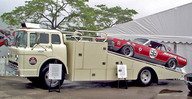 One of my early recollections is of Bob Jane's F100 mini semi with the Jaguars E type and MK11 on the back.
