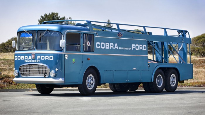Compare this with Scarab transporter and recently auctioned ex Cobra transporter which were supposed to be ex Maserati. You will see that in the later two the cars are not over the drivers cabin.