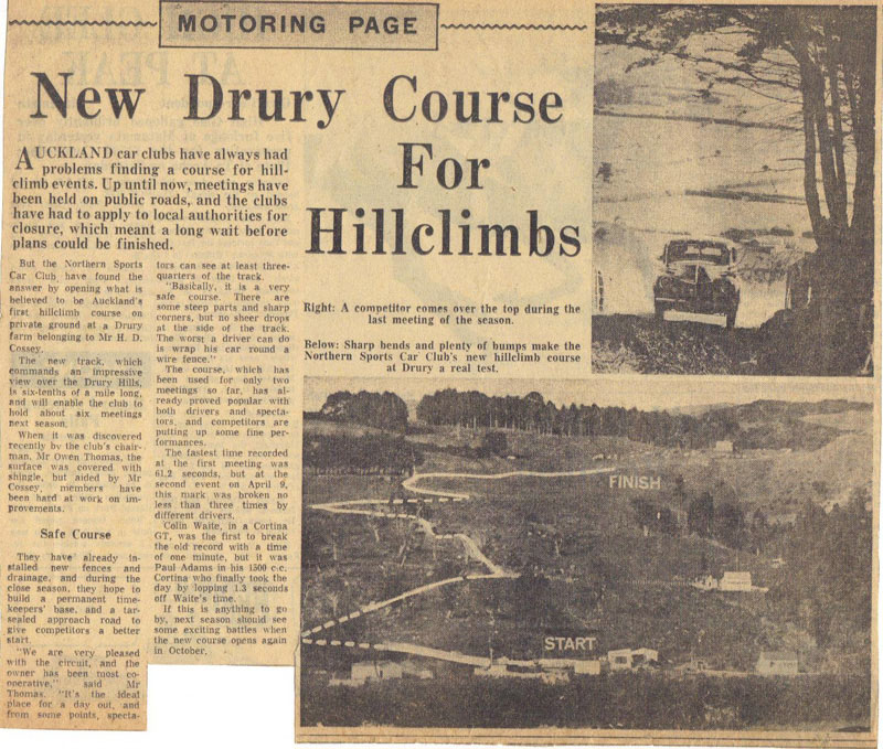 Cosseys Farm Hill Climb the article from March 1967 NZ Herald the first meeting