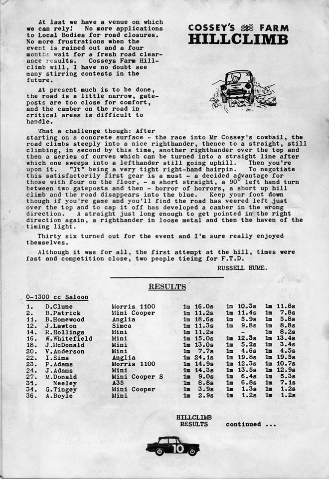 An article about when the Hill was first used - the Cossey's were great people and their farm track was used from 1967 into the 1980's.