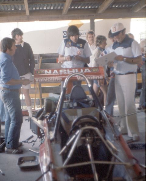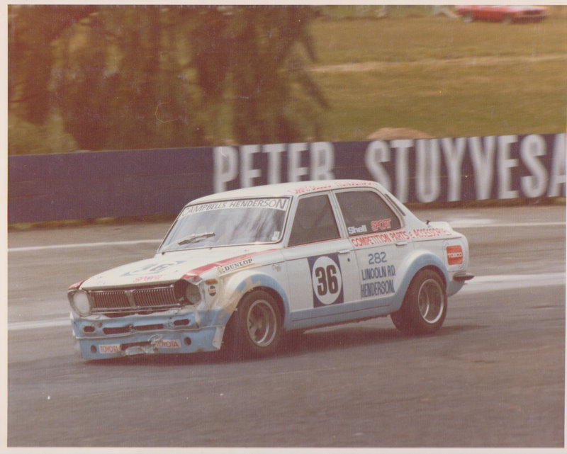Dick Johnson giving Wayne Wilkinson a big hurry-up, Nissan 500 race, Pukekohe, 1985.