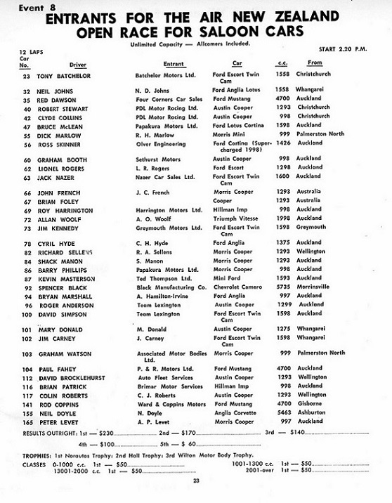 I had the wonderful experience of growing up in the Morrinsville area at Kiwitahi at a time when so many had connections to motor racing.e.g. Spencer (Spinner ) Black went to Kiwitahi school with my sister, Bryan Innes's family brought property from my grandfather, Dennis Marwood married the sister of a neighboring farmer, a relative owned the Motordrome Service Station in Te Rapa, Terry Marshall was at Morrinsville College when I was there, John Paton (Paton & Black ) engines was a friend, Ross Greenville had a really sweet neice etc. etc. ( We were like a big family )