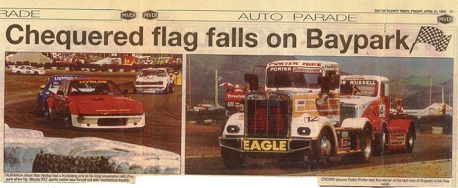 Some more cuttings from the Bay of Plenty Times of the last day at Baypark Raceway. April 1995.