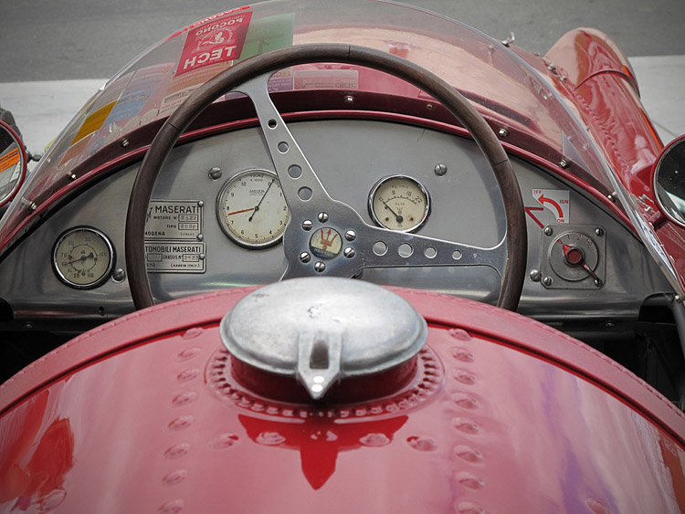 At the end of the Salon, #2501 was whisked away for its racing debut at the Spanish Grand Prix – the last Formula One race of the season. This race was also the first team drive for Maserati’s new star, Stirling Moss.