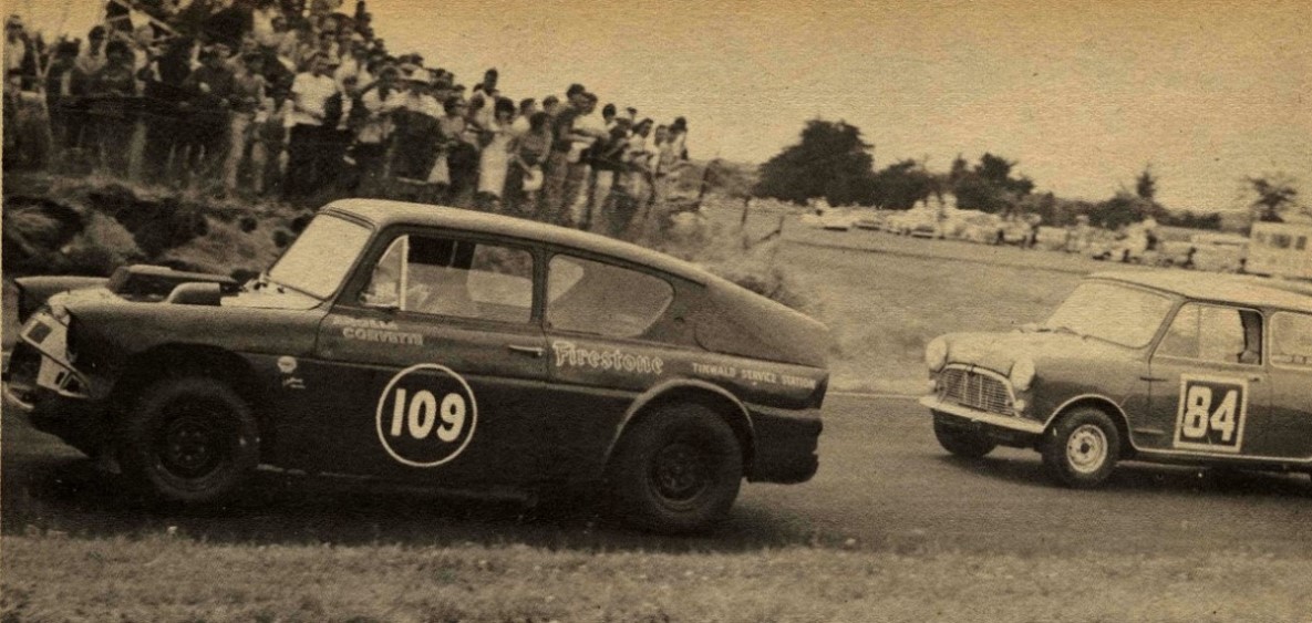 'Doc" Langley in his Austin Cooper S chasing Neil Doyle in his Anglia-Corvette # 109