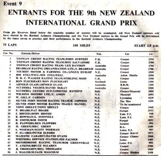 David and Nick are wanting to gather as much history on the car as possible, particularly its time spent down-under. As can be seen below, the Cooper is believed to have raced in New Zealand and Australia during the 1961/62 Tasman Series. However, whats not totally clear is who drove it. This is from David: