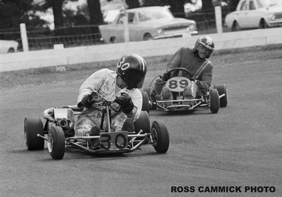 Back in 1973 when I was just starting to shoot some motor racing photos I decided to get a bit of on track experience by attending some races at a couple of local kart tracks. The Mt Wellington track was very close to where I lived so I went along with my camera and a couple of rolls of film to see if I could get a few action shots. I approached an official looking chap about going on to the inside of the track as there seemed to be no one else with a camera anywhere in sight. He said I was welcome to do whatever I liked, as long as I didn't get in the way and was careful where I stood.