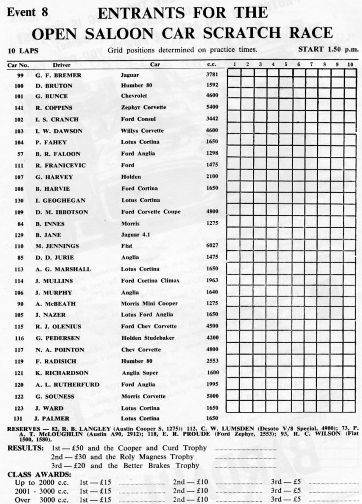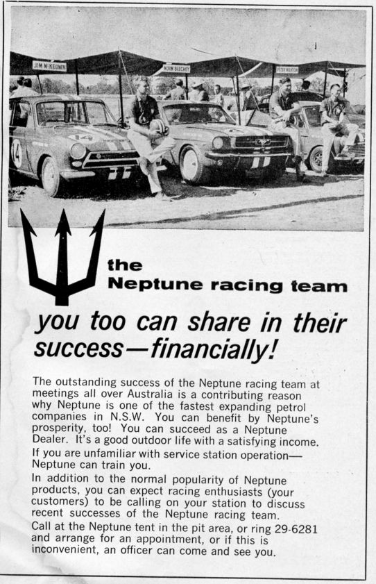 This is an entry list from the Warwick Farm meeting on 5 December 1965. The numbers don't match but it does show the three Neptune Racing Team cars.