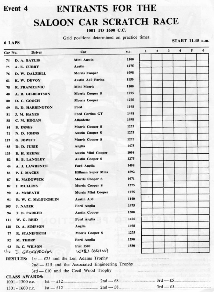 Folks, I've had a request from an Australian enthusiast wanting info on the Geoghegan family MkI Cortina, and if it had any race history in New Zealand. I know Pete Geoghegan raced his Mustang at the 1966 NZGP meeting at Pukekohe, but did he or Leo race the Cortina in NZ prior to this?