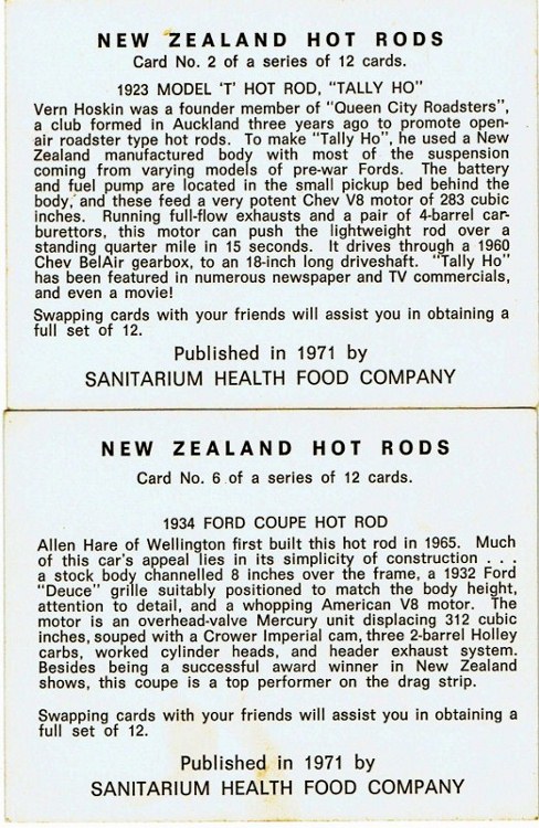 Featured on the " Sanitarium Weetbix " card series back in 1970 1971 - these from the 1971 series.