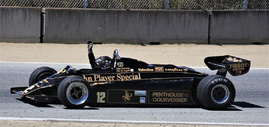 We had a bit of a chat about that event. Here he gives the thumbs up as he returns from a practice session. I always liked the John Player Special paintwork.