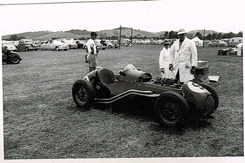 Brian Tracey demonstrating the Ardun Special at Epsom at the 1958 pre Ardmore NZIGP meeting.