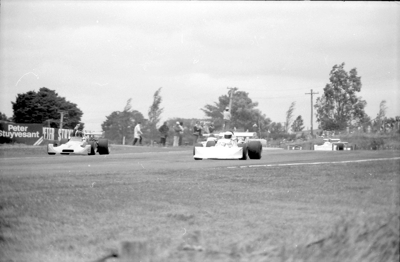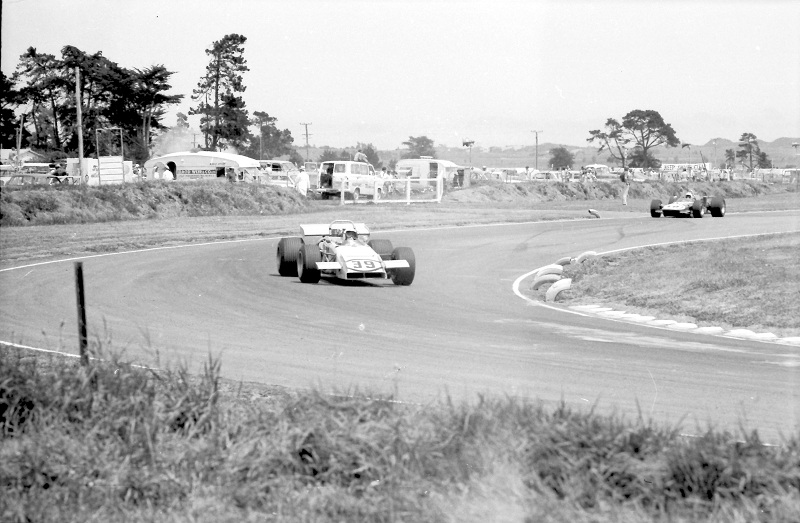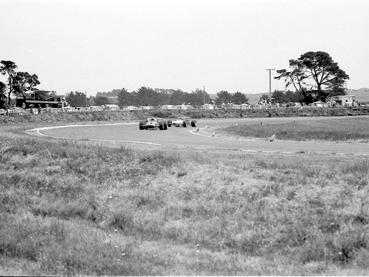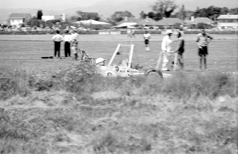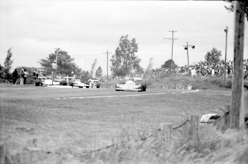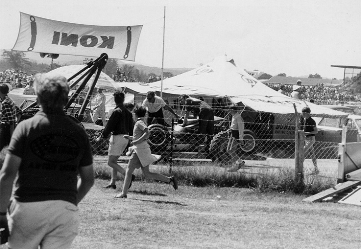 The incident at the Levin hairpin was in the Gold Star race at the International meeting after Bryan Faloon disintergrated the Climax engine leaving a large trail of oil and engine parts in the braking area. Spinners included Graeme Lawrence and Dennis Marwood fortunately without hitting anything.